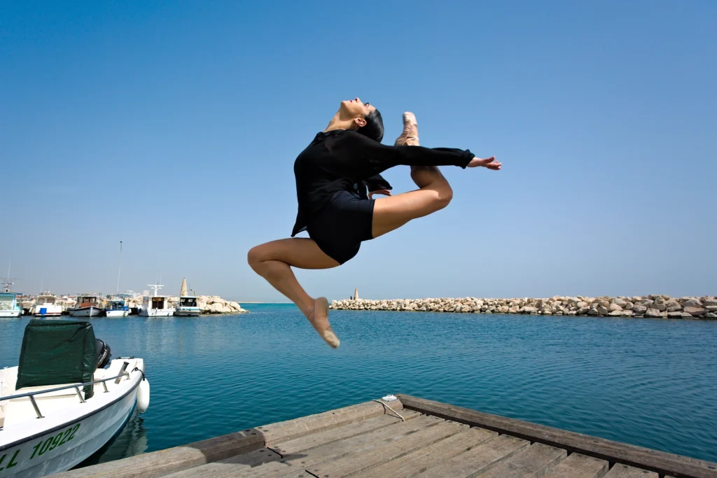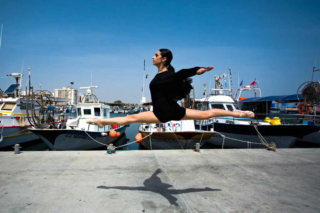 The harmony of a ballet dancer can be brought in any context, giving grace and equilibrium to the unexpected. Reggina Markidou dances in the Larnaca Fishers’ Harbour.